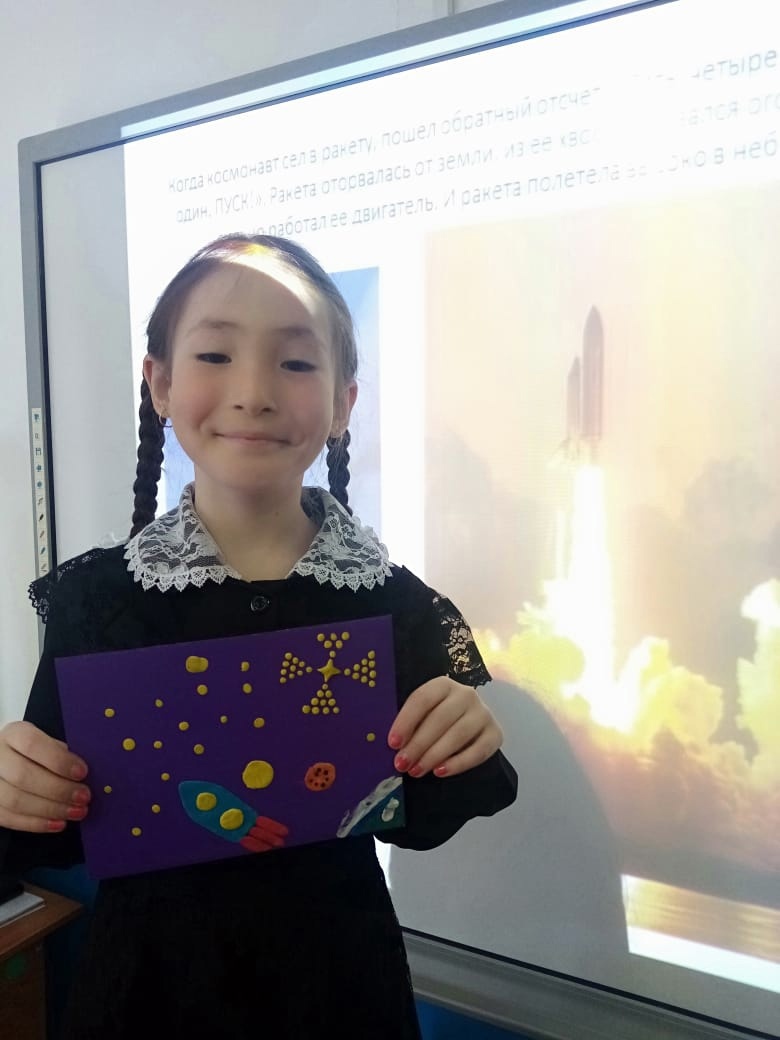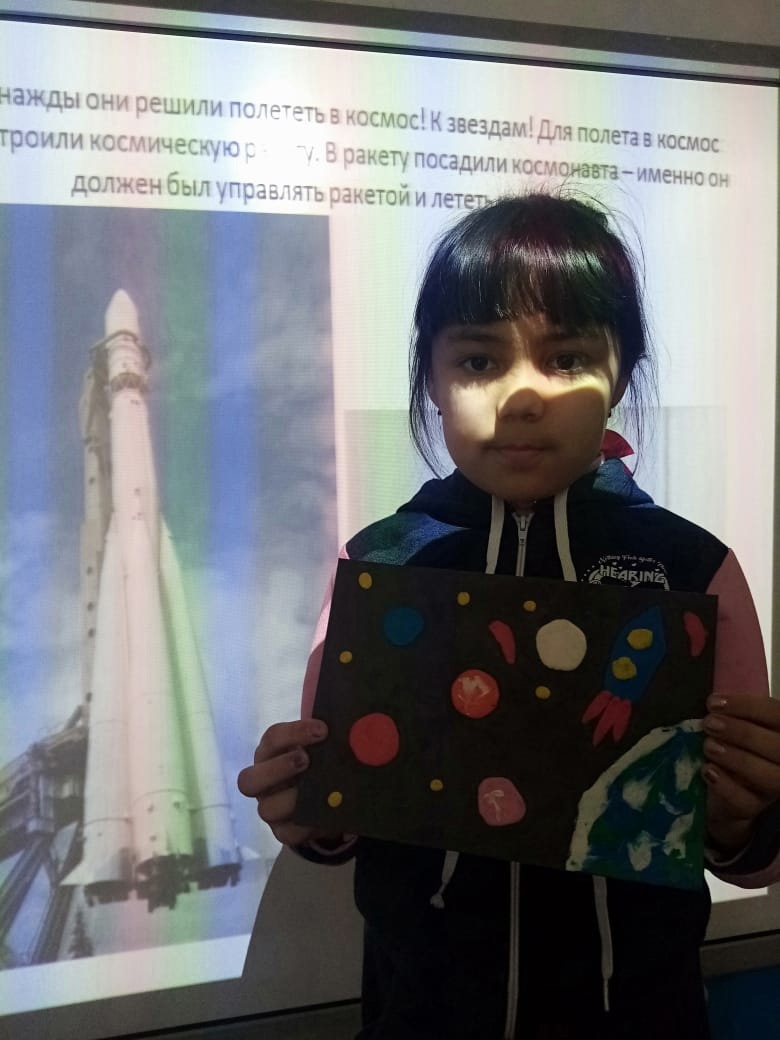 Ребята знакомились с информацией о первом полете человека в космос и о космосе вообще. Старшее и среднее звено посмотрели интересную презентацию, посвященную Юрию Гагарину. Также в классах прошла непосредственно образовательная деятельность. Знания, полученные на внеклассных мероприятиях, дети закрепили в своих творческих работах и рисунках. Были оформлены выставки детских работ, посвященные Дню космонавтики.
